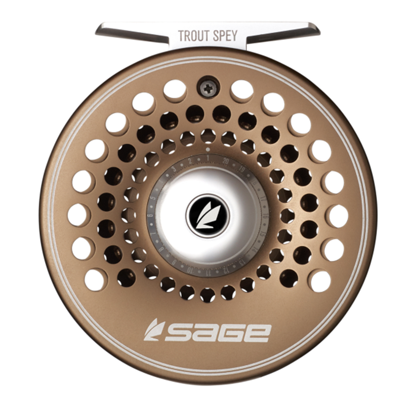 Sage TROUT SPEY fly reels marry the classic aesthetics of Sage reels from the past with their modern, high-performance features of today. Simply fantastic trout spey fly fishing reels! Sage's Sealed Carbon System (SCS) drag provides ample amounts of fish-stopping power while remaining super smooth and protective of light tippets. The large arbor provides fast fly line retrieval. These machined, full frame fly reels have minimal porting for some additional weight to help balance longer spey fly rods.