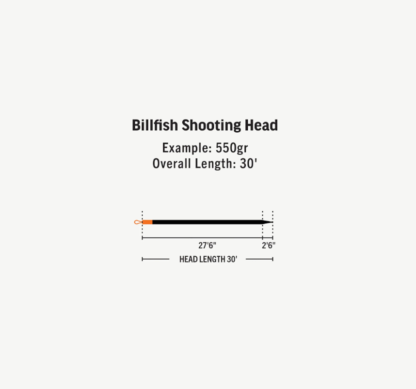 RIO's Billfish shooting head is a 30ft shooting head with a powerful front taper to cast the biggest of flies, and a hard, tropical coating to prevent the line from wilting in the heat
