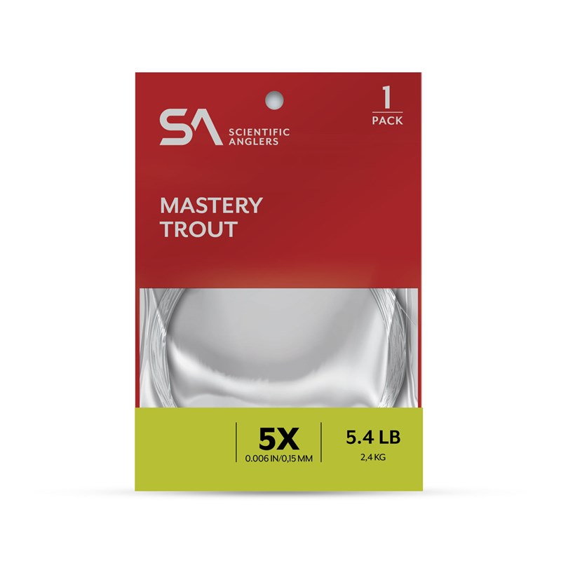 The Scientific Anglers Mastery Trout Leader is a high-quality yet economical tapered nylon leader designed for versatile trout fishing in freshwater. Its carefully engineered taper ensures smooth energy transfer for accurate, delicate presentations—perfect for dries, nymphs, indicators, and general trout setups.