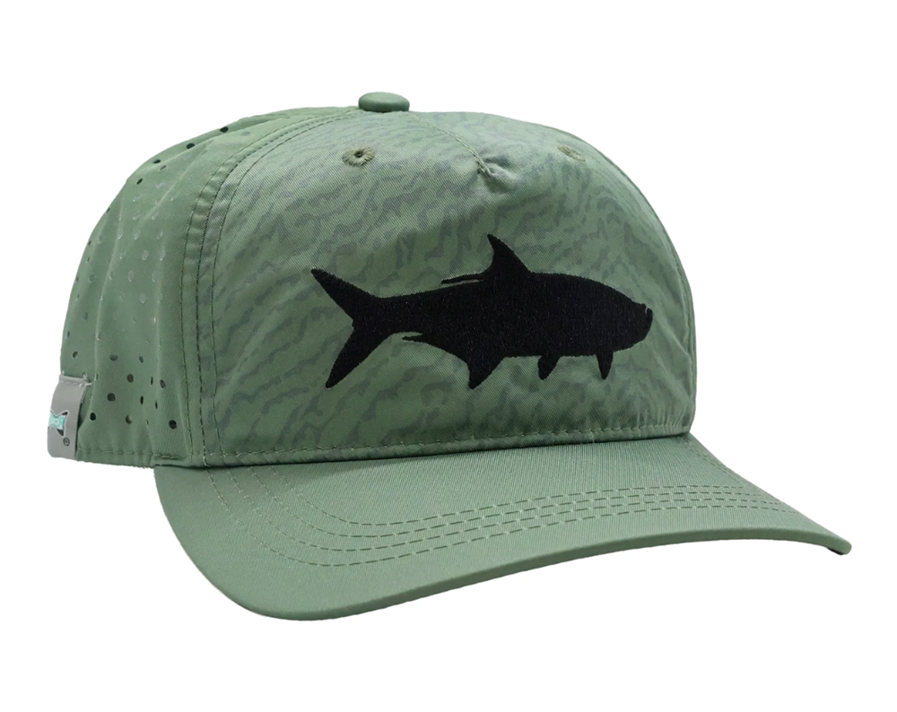 Crafted from moisture-wicking, quick-dry fabric, it helps manage sweat and heat, making it ideal for saltwater fishing, boating, hiking, or casual wear. The tarpon-inspired graphics capture the spirit of coastal fishing, while the adjustable strap ensures a secure, customizable fit for most head sizes.