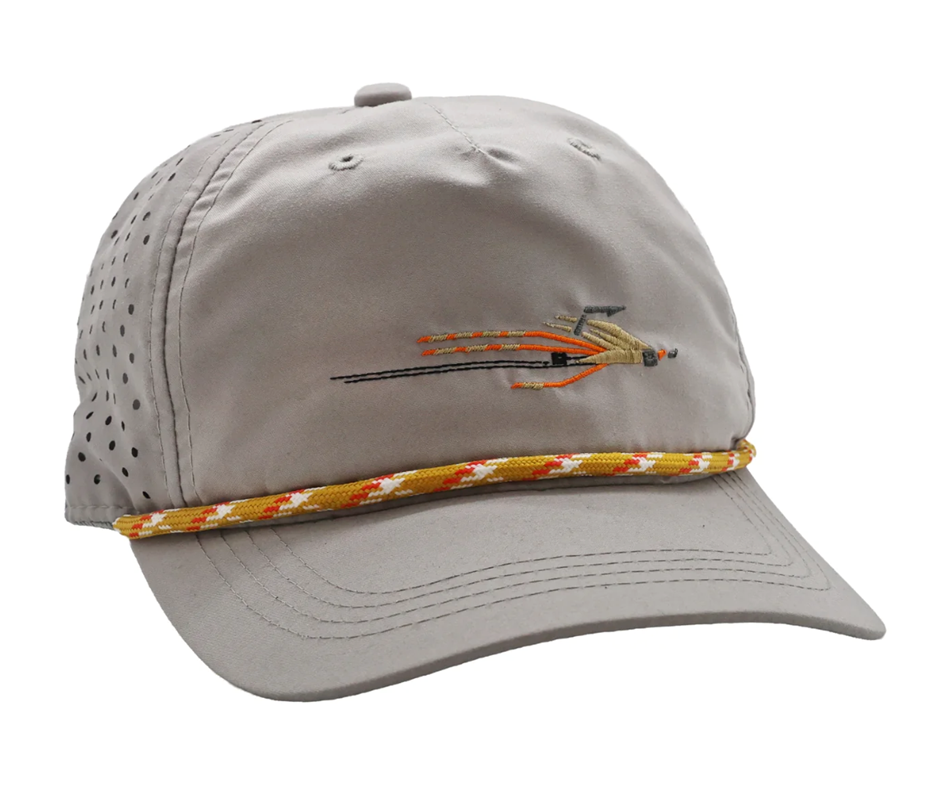 Made with high-performance, moisture-wicking fabric, it helps manage sweat and dries quickly, making it perfect for saltwater fishing, boating, or any outdoor adventure. The Flats Scampi-inspired design brings a bold, coastal aesthetic that showcases your passion for fly fishing and the outdoors. An adjustable strap ensures a secure, customizable fit for most head sizes.